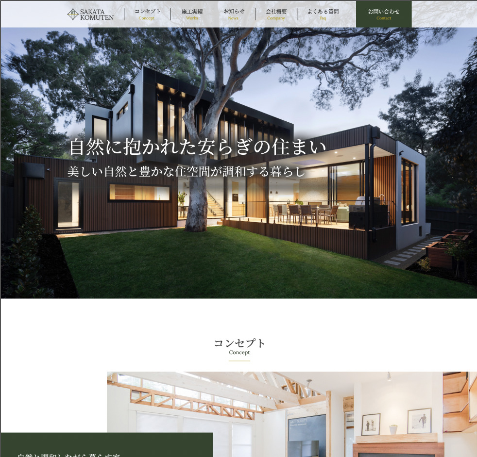 建築事務所のLPで、豊かな住空間と自然の調和をHPでも表現されています。