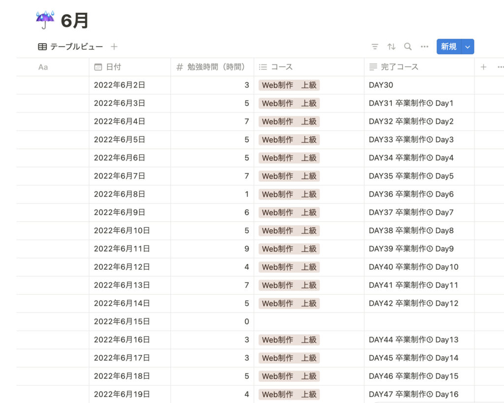 学習記録をつけるにあたり、Notionを活用しました。
